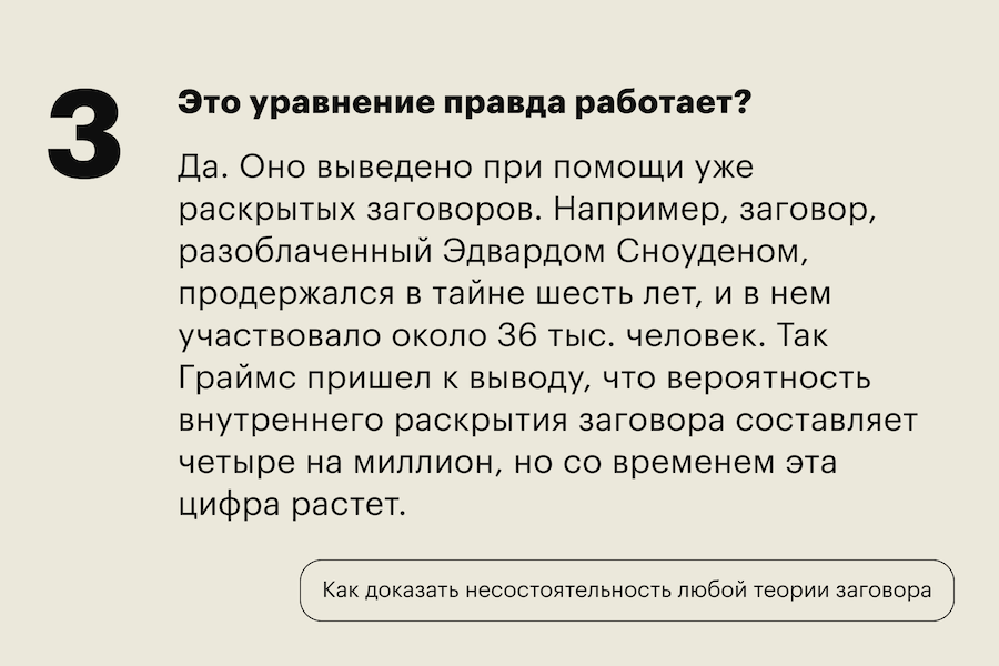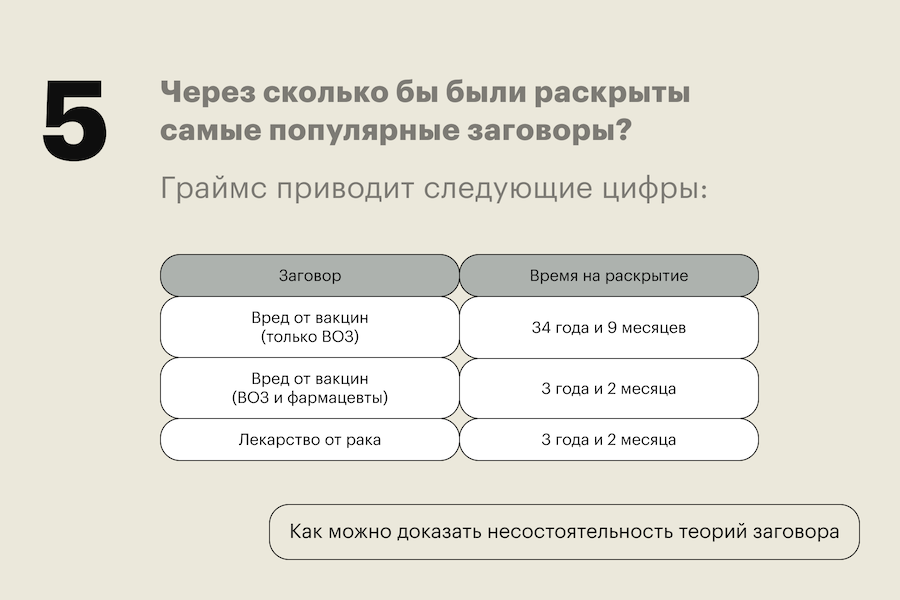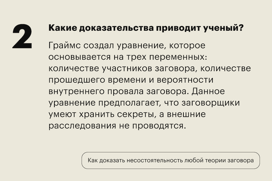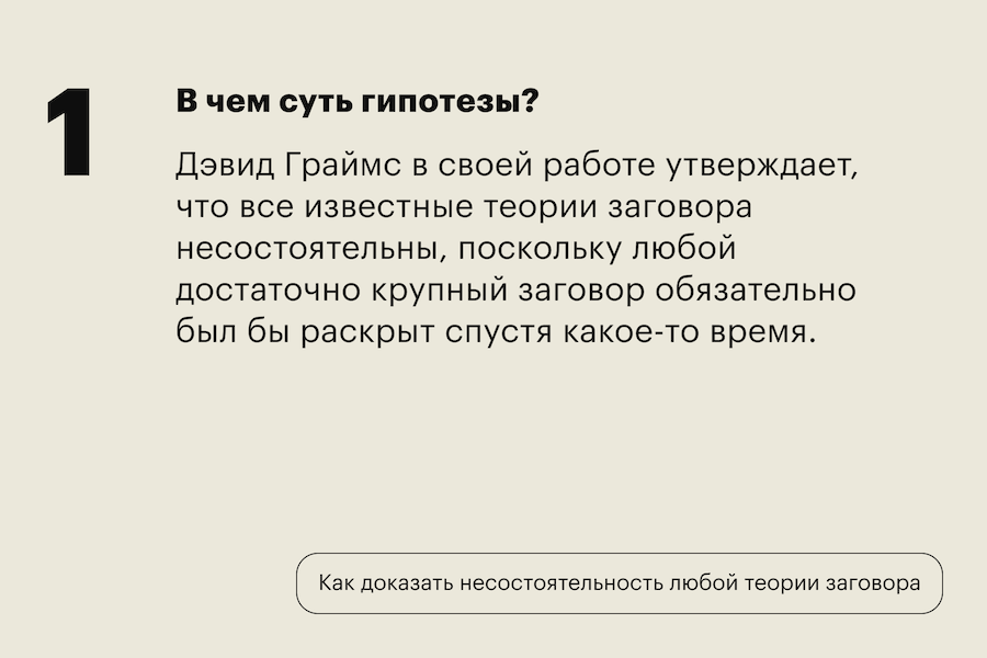Высадка американцев на Луну, вред от вакцин и сокрытие лекарства от рака — одни из самых популярных теорий заговора. Но ирландский физик Дэвид Роберт Граймс придумал, как опровергнуть их все с помощью науки
