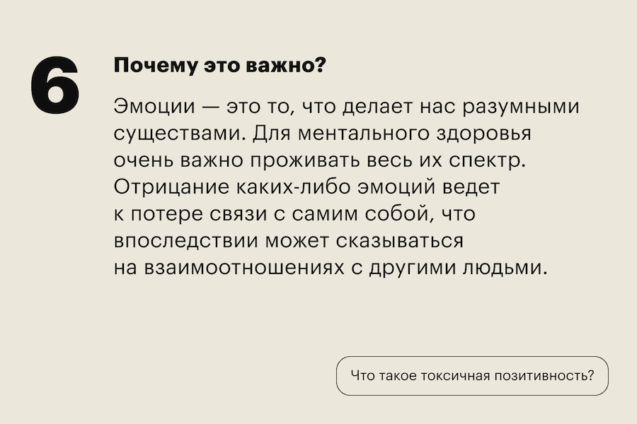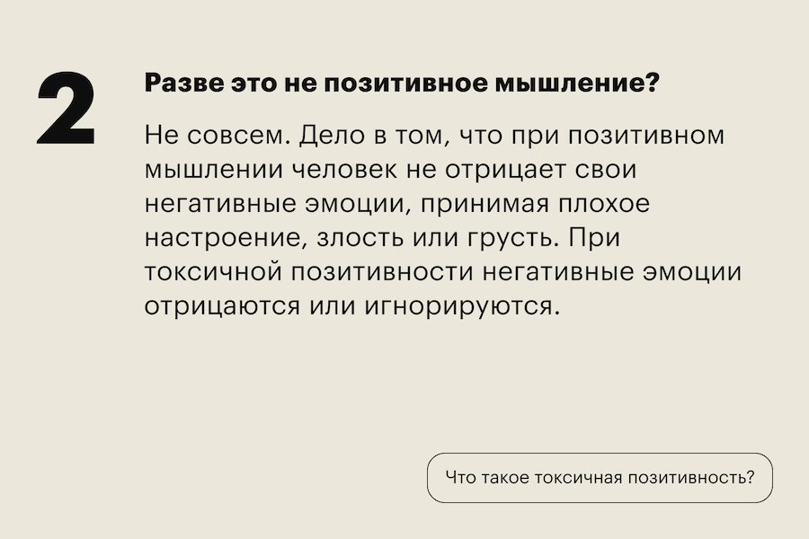 Общество Только хорошие вайбы: что такое токсичная позитивность Фото: Unsplash Мало кто любит проживать плохие моменты. Но совсем игнорировать негативные эмоции и фокусироваться только на счастье вредно для ментального здоровья. Разбираемся, почему Обновлено 22.02.2023 Авторы Теги Сергей Парамонов Саморазвитие Человек меняющийся Короче