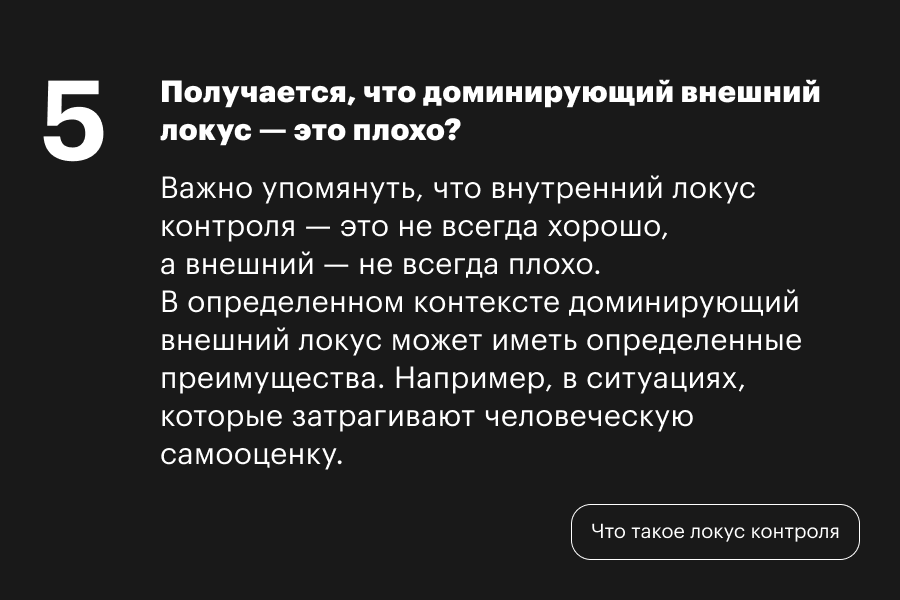 Когда что-то идет не так, мы часто спрашиваем себя, кто в этом виноват. И то, как мы в итоге отвечаем на этот вопрос, во многом зависит от нашего локуса контроля. Разбираемся, что это такое