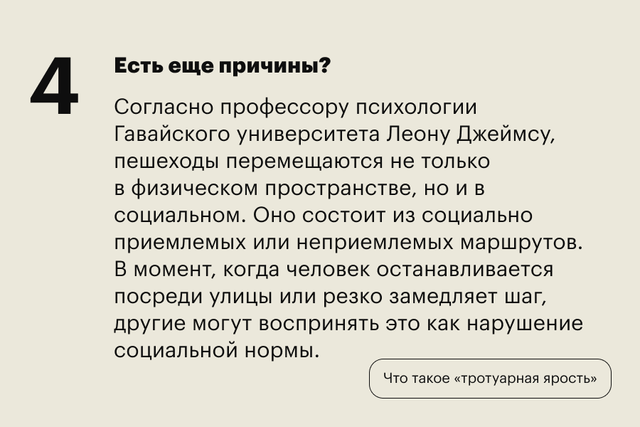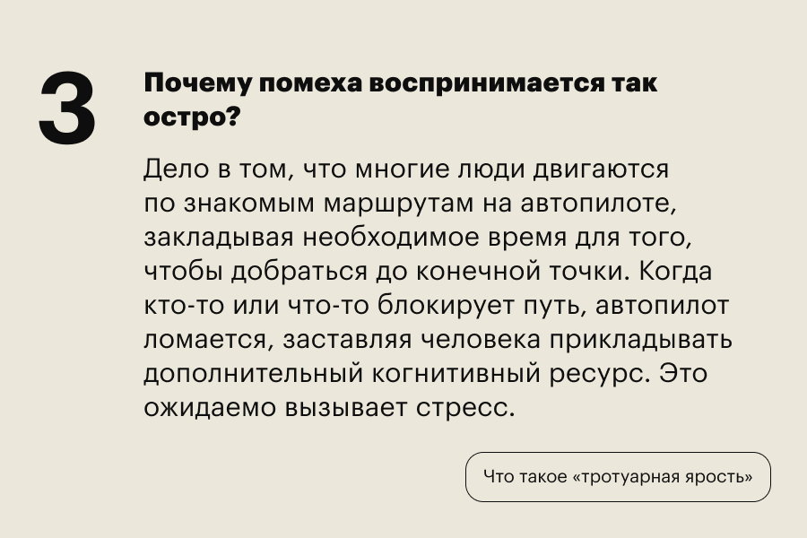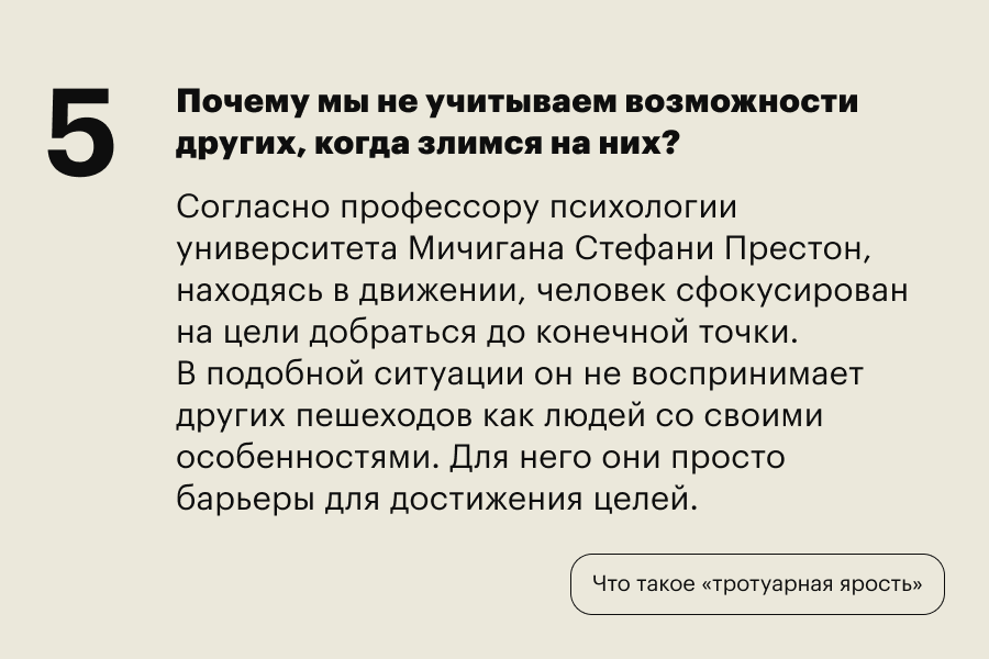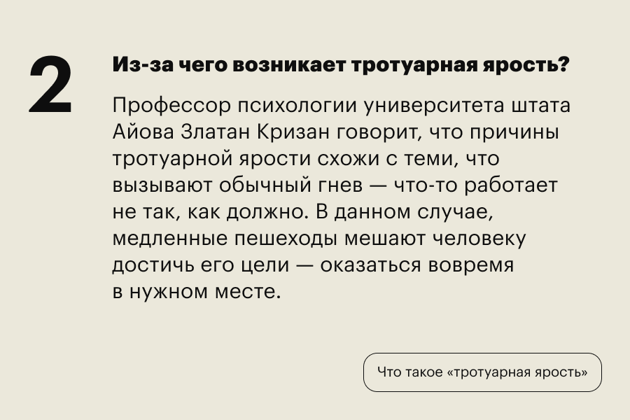 Раздражает ли вас, когда вы спешите по делам, а человек впереди еле плетется или просто замирает посреди улицы? Если да, то вероятно вы попали под влияние «тротуарной ярости». Рассказываем, почему она может возникать