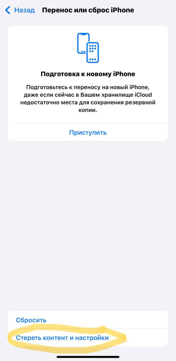 - Выбрать пункт «Стереть контент и настройки»;