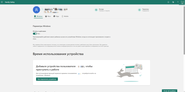 - Выбрать учетную запись ребенка;