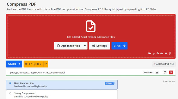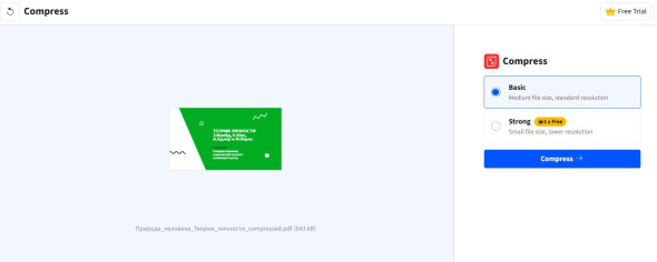 - когда сжатие будет завершено, появится кнопка «Скачать сжатый PDF».