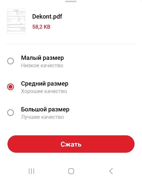 - выбрать формат сжатия («Малый», «Средний», «Большой»), нажать «Сжать».