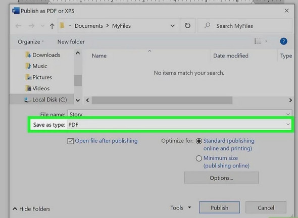 - в окне настройки параметров сохранения выбрать формат PDF, отметить пункт «Оптимизировать для электронного распространения» и нажать «Экспорт».
