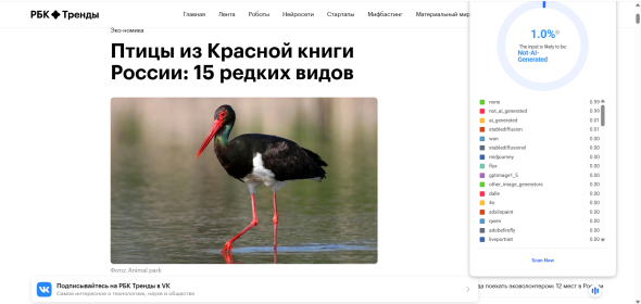 Видимо, инструмент может ошибаться с контентом от не самых популярных или локальных (например, российских) нейросетей.
